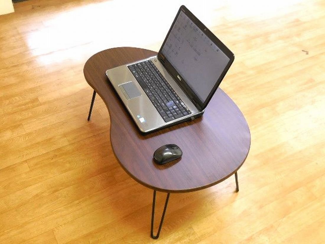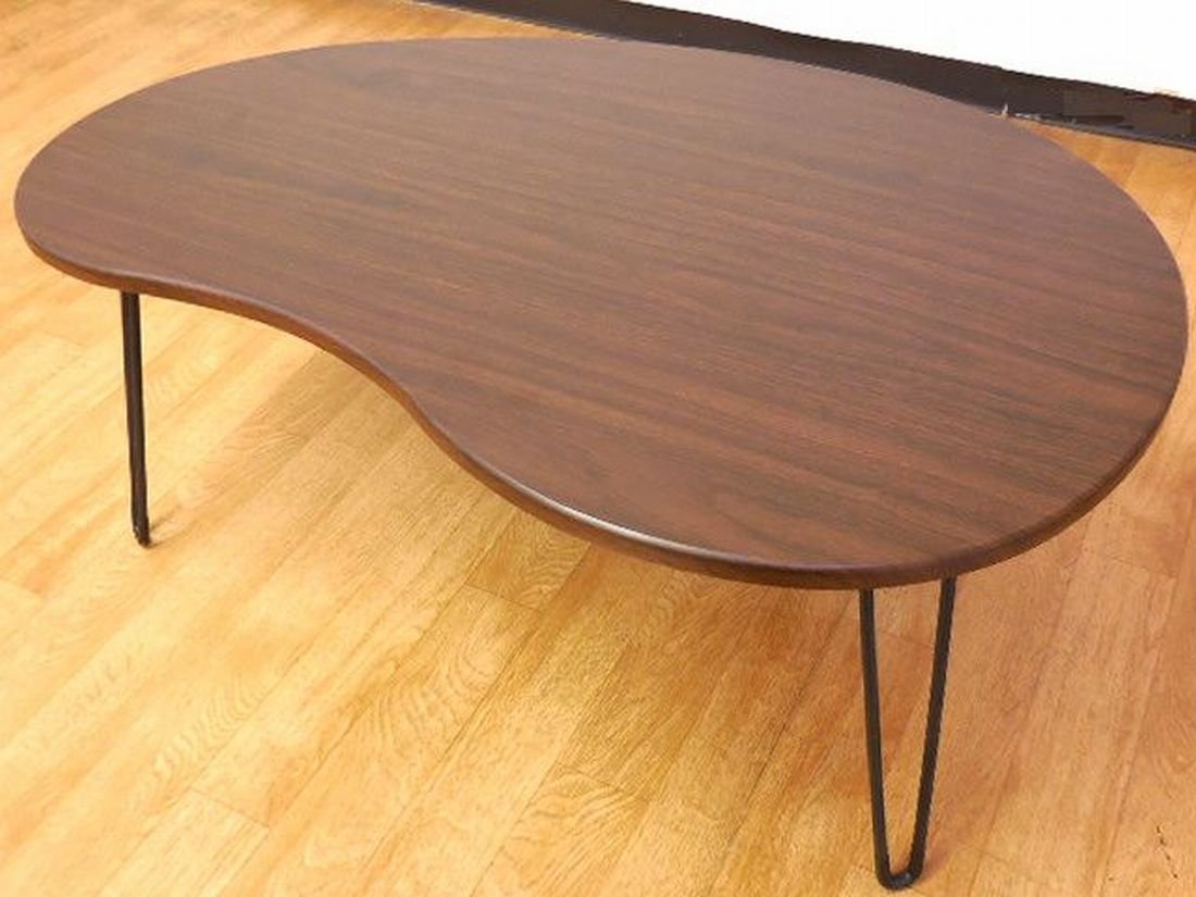 ビーンズ型が可愛い折りたたみローテーブル。ワイヤー素材の脚やニュアンスのあるカラーの天板でお部屋の主役になるオシャレなアイテムですね。