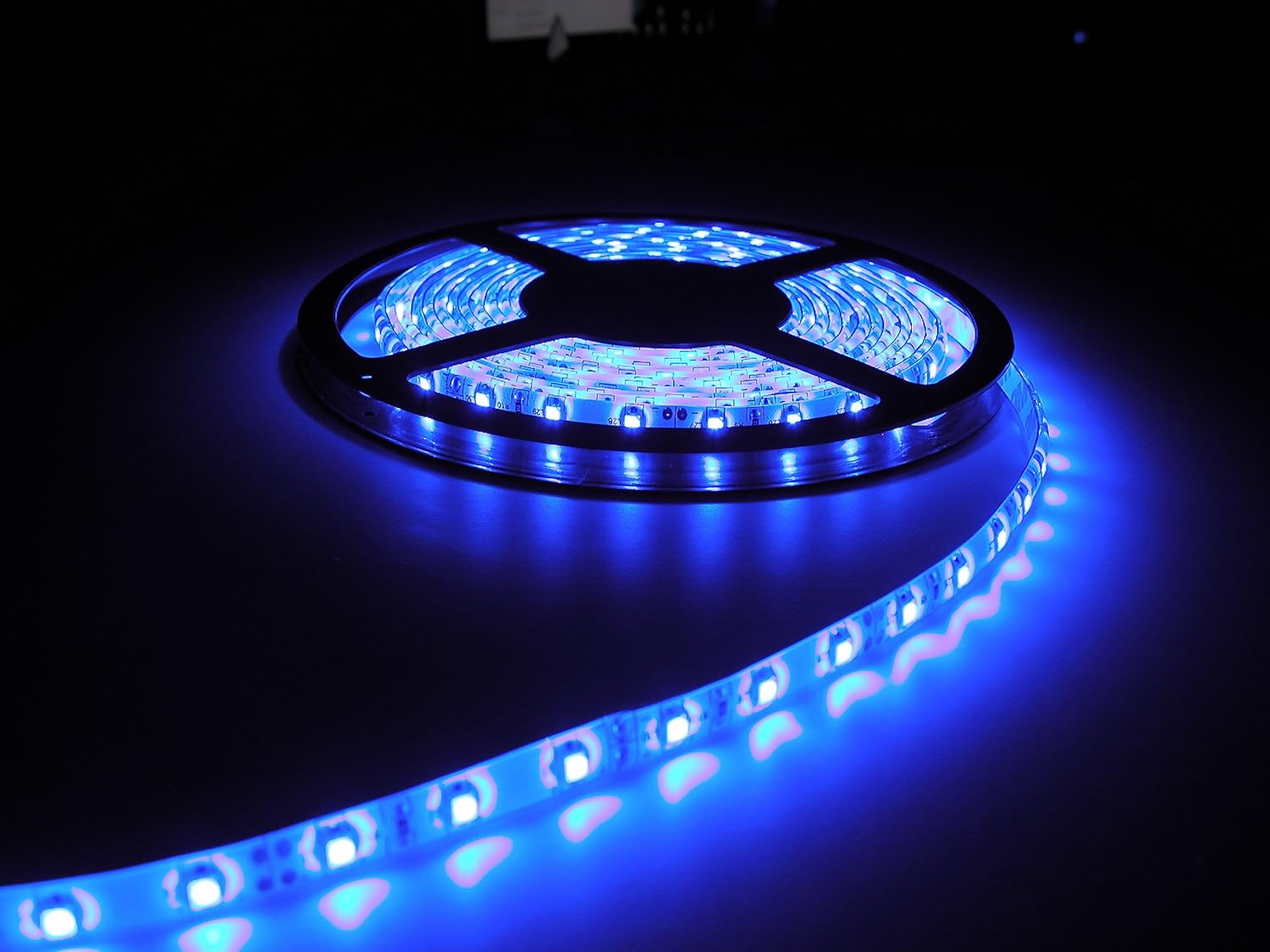 ネットでも気軽に手に入るACアダプター付きのLEDテープは、一定間隔でLEDが取り付けられているテープ状の照明器具。両面テープで留めるだけだから簡単に照明を追加できると人気です。色も選べるほか、調光器付きのものもあるみたい。